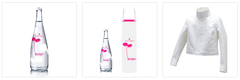 After Issey Miyake, Paul Smith and Jean-Paul Gaultier, it’s Courreges’ turn to dress Evian’s end of year bottle. For the occasion, and to celebrate the 50th anniversary of the brand, Courreges will release its iconic jacket in white. And yes, believe it or not, it never existed before in this color!
