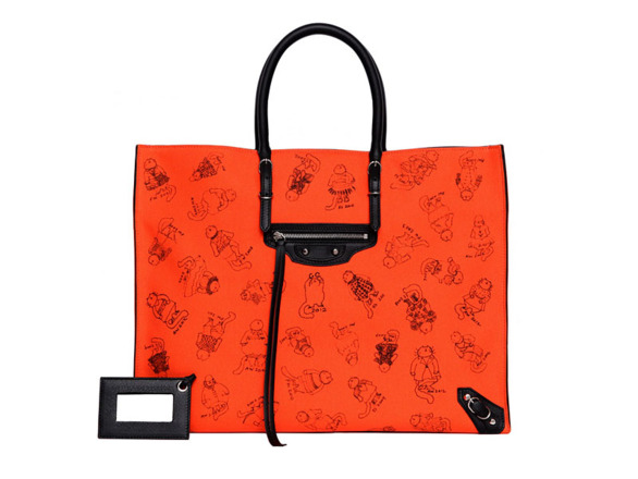Sorry, dog lovers. It’s a cat’s world right now. Karl Lagerfeld’s one-year old Birman, Choupette, is dominating Twitter so hard she’s sure to score a Whiskers endorsement deal any day. And now comes Grace Coddington’s drawings of her cat on a Balenciaga tote and two scarves. The American Vogue creative director has depicted Pumpkin dressed in Nicolas Ghesquière’s greatest hits for the house from the last ten years.